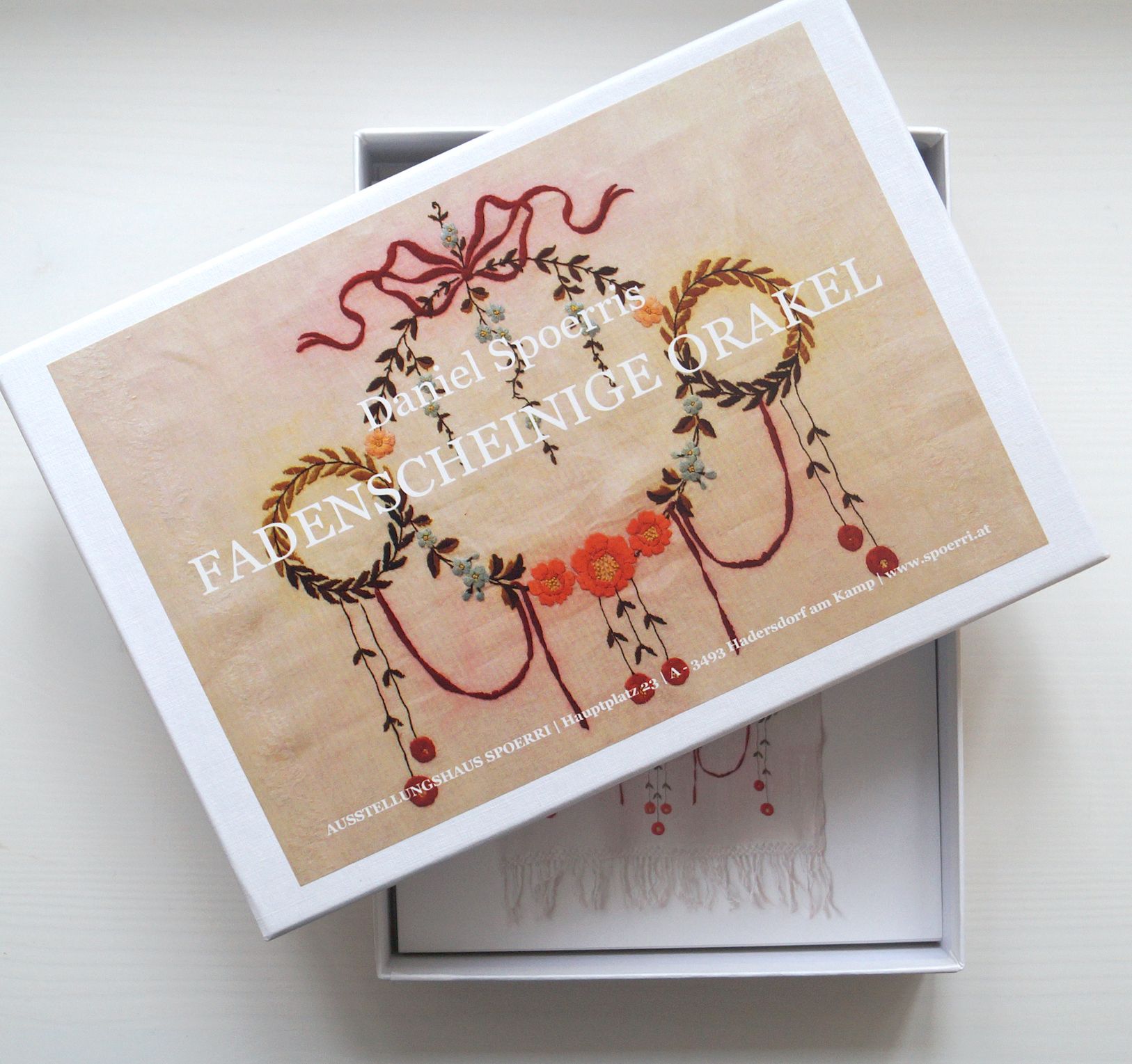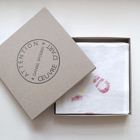 Postcard edition of selected oracle cloths by Daniel Spoerri in a gift box