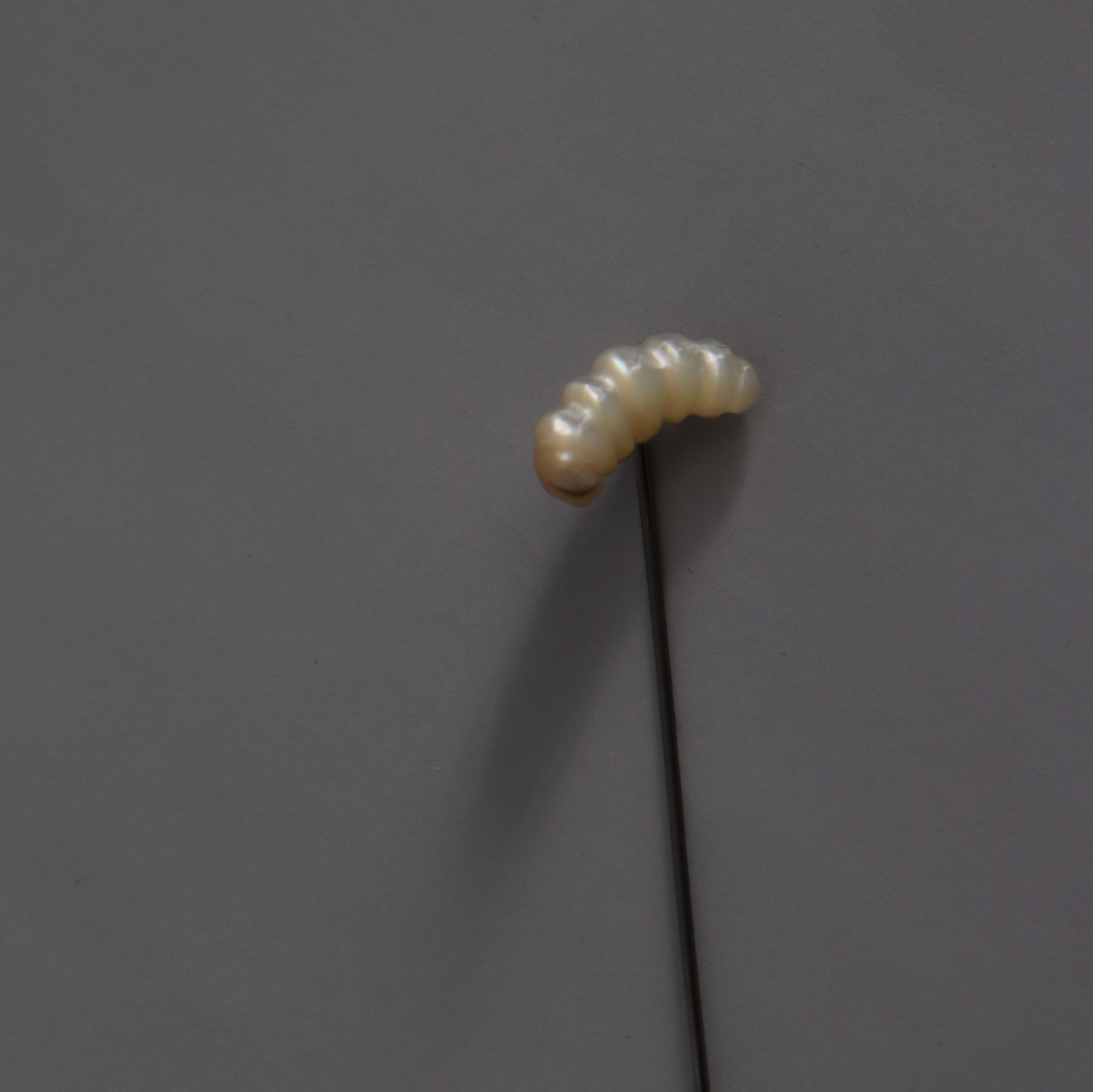 Lapel pin, carved mother-of-pearl.