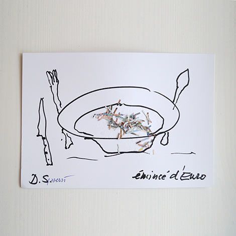Stampa su carta di un'immagine trappola di Daniel Spoerri - viene spesso utilizzata anche come "tovaglia" dal centro espositivo in occasione di eventi